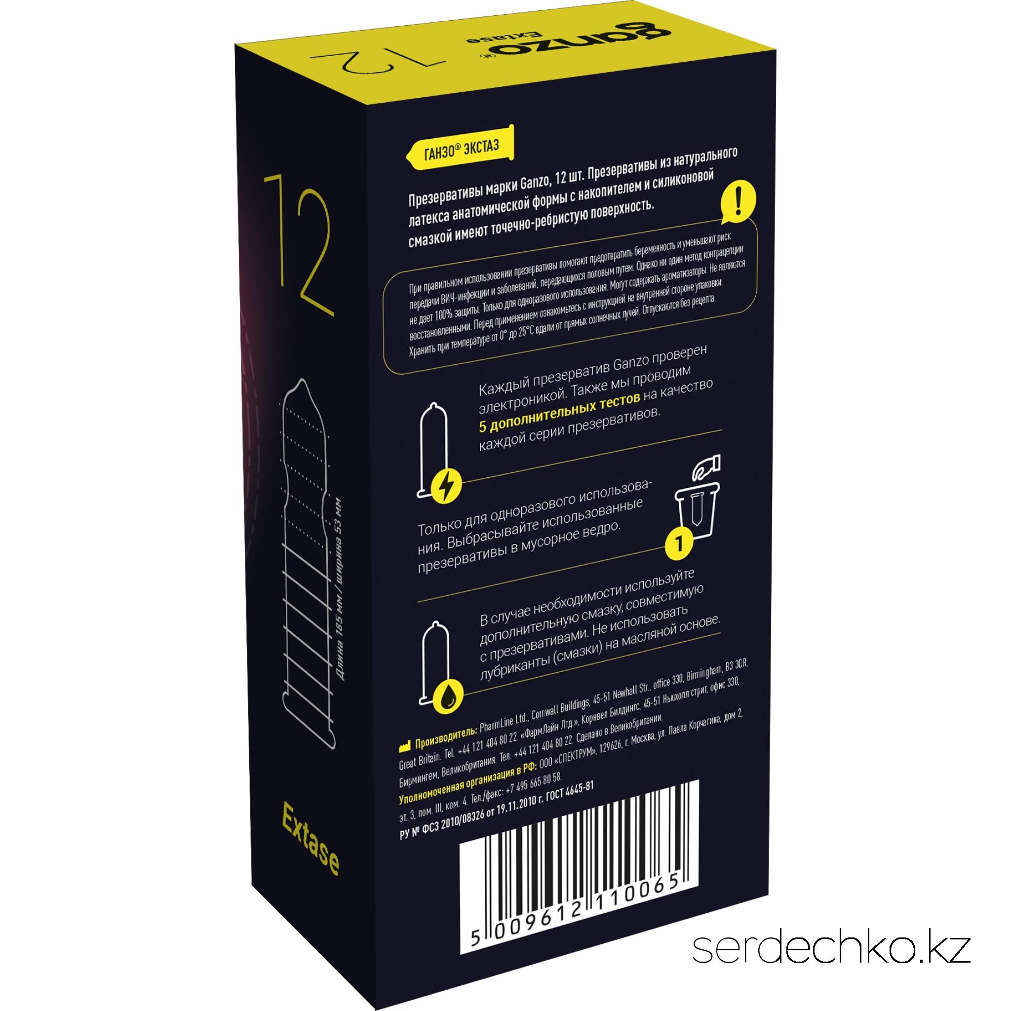 ПРЕЗЕРВАТИВЫ GANZO EXTASE №12 (анатомические с точечной и ребристой текстурой)